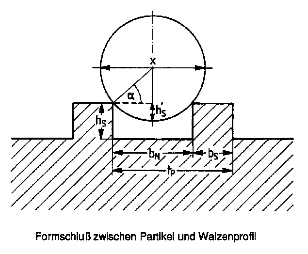 The best form closure is achieved if the depth of impression hS’ is equal to the corrugation height hS and the profile pitch is adjusted to the maximum particle size xmax.